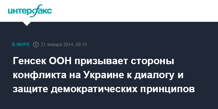 "Генеральный секретарь продолжает следить за событиями на Украине пристально и с обеспокоенностью. Он повторяет свое обращение ко всем заинтересованным (сторонам), чтобы действовали сдержанно, избегали какой-либо дальнейшей эскалации и насилия и поддерживали демократические принципы свободы слова и мирных собраний", - говорится в заявлении пресс-секретаря генсека, опубликованном на сайте ООН 20 января.