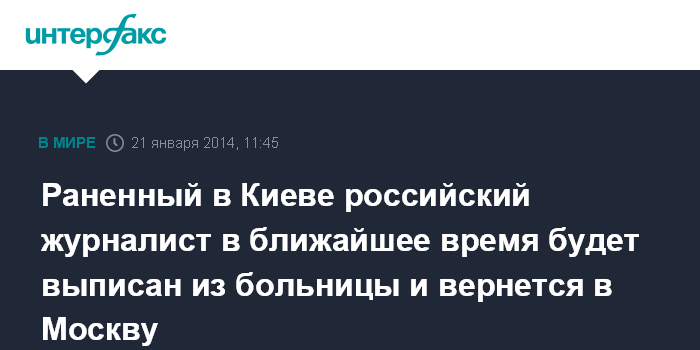 Раненный в Киеве российский журналист в ближайшее время будет выписан из больницы и вернется в Москву
