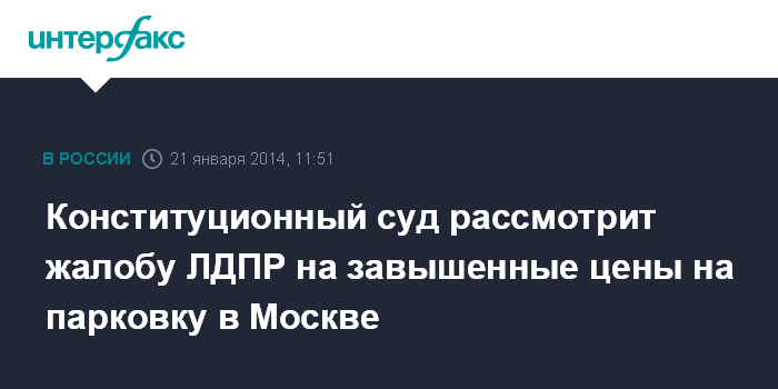 Конституционный суд рассмотрит жалобу ЛДПР на завышенные цены на парковку в Москве