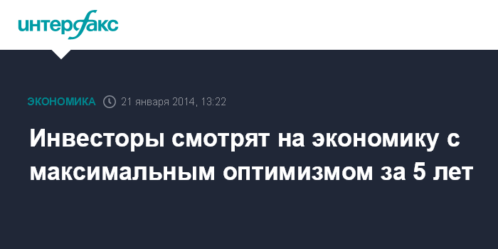 Инвесторы смотрят на экономику с максимальным оптимизмом за 5 лет
