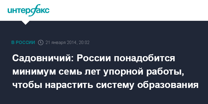 Садовничий: России понадобится минимум семь лет упорной работы, чтобы нарастить систему образования