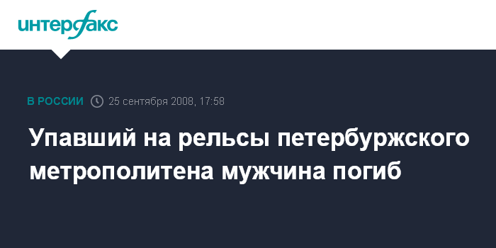 Упавший на рельсы петербуржского метрополитена мужчина погиб