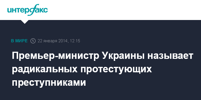 Москва. 22 января. INTERFAX.RU - Премьер-министр Украины Николай Азаров назвал протестующих в центре Киева преступниками.