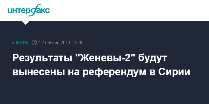 Москва. 22 января. INTERFAX.RU - Результаты мирной конференции "Женева-2" будут вынесены на общесирийский референдум, заявил глава МИДа страны Валид Муаллем.