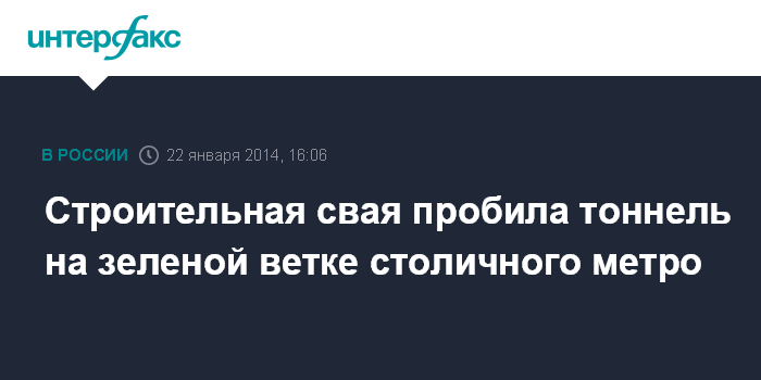 Москва. 22 января. INTERFAX.RU - Тоннель на перегоне между станциями "Автозаводская" и "Коломенская" Замоскворецкой линии Московского метрополитена пробит строительной сваей, сообщили "Интерфаксу" в среду в пресс-службе метро.