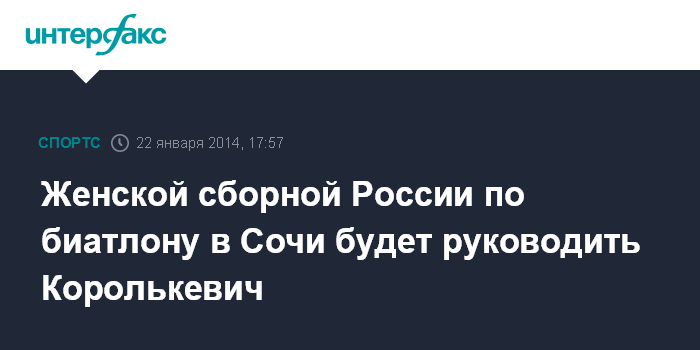 Москва. 22 января. INTERFAX.RU - Обязанности старшего тренера женской сборной России по биатлону на Олимпийских играх в Сочи будет исполнять Владимир Королькевич, сообщает официальный сайт Союза биатлонистов России.