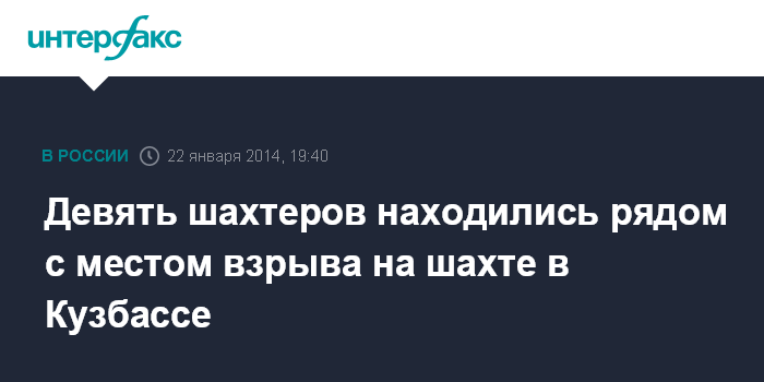 Москва. 22 января. INTERFAX.RU - Девять шахтеров находились на участке, который расположен рядом с местом взрыва на шахте имени Дзержинского в Прокопьевске Кемеровской области, сообщила пресс-служба обладминистрации.