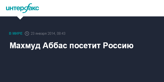 Москва. 23 января. INTERFAX.RU - Президент Палестины Махмуд Аббас по приглашению Владимира Путина 23 января посетит Россию с рабочим визитом.