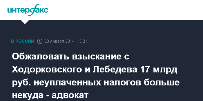 Обжаловать взыскание с Ходорковского и Лебедева 17 млрд руб. неуплаченных налогов больше некуда - адвокат