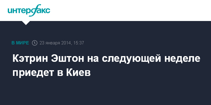 Брюссель. 23 января. INTERFAX.RU - Верховный представитель Европейского Союза по вопросам внешней политике и политике безопасности, вице-президент Европейской комиссии Кэтрин Эштон на следующей неделе посетит Киев.