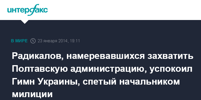 Радикалов, намеревавшихся захватить Полтавскую администрацию, успокоил Гимн Украины, спетый начальником милиции