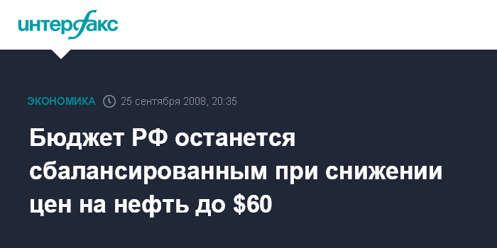 "Даже при снижении в 2008 г. цен на нефть до $60 за баррель федеральный бюджет все равно останется сбалансированным, несмотря на происходившее в последние годы увеличение расходов", - сказал он.