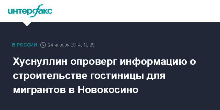 Москва. 24 января. INTERFAX.RU - Власти Москвы считают провокацией распространение информации о строительстве гостиницы для мигрантов в Новокосино.