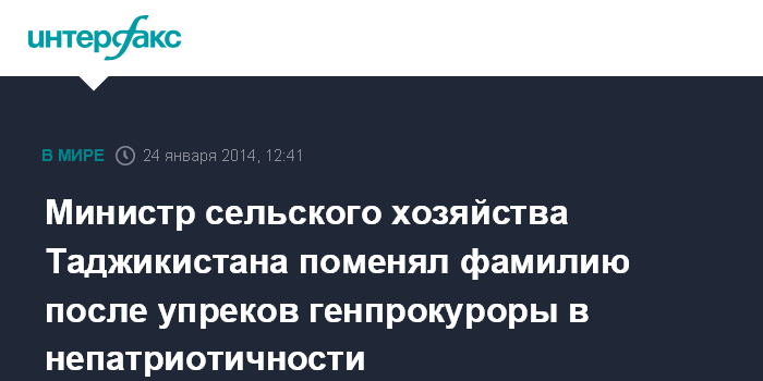 Министр сельского хозяйства Таджикистана поменял фамилию после упреков генпрокуроры в непатриотичности