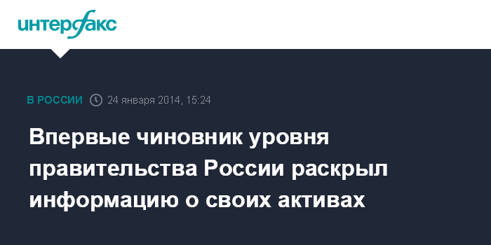 Впервые чиновник уровня правительства России раскрыл информацию о своих активах