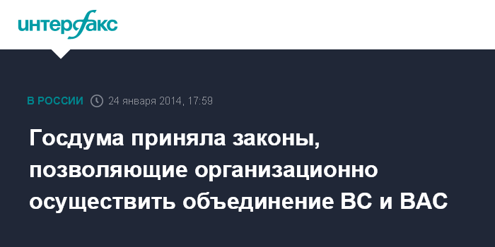Госдума приняла законы, позволяющие организационно осуществить объединение ВС и ВАС