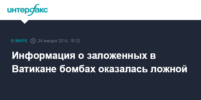 Москва. 24 января. INTERFAX.RU - Сообщения о том, что на площади Святого Петра в Ватикане могут быть заложены бомбы, оказалась ложной, сообщает в пятницу агентство EFE.