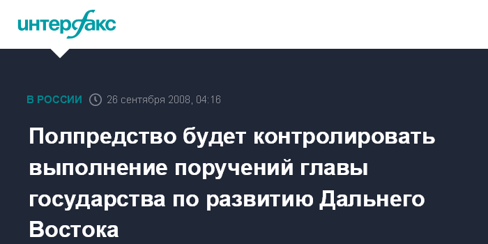 Хабаровск. 26 сентября. ИНТЕРФАКС-ДАЛЬНИЙ ВОСТОК - Аппарат полномочного представителя президента РФ в Дальневосточном федеральном округе будет жестко контролировать исполнение поручений главы государства, данные им в ходе рабочей поездки на Дальний Восток, заявил полпред Олег Сафонов.