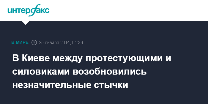 Москва. 25 января. INTERFAX.RU - В Киеве на улице Грушевского, где с 19 января происходит противостояние силовиков и протестующих, после двух суток затишья начались незначительные столкновения.