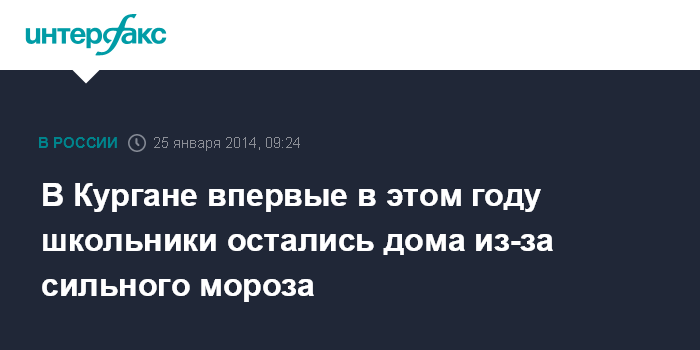 Москва. 25 января. INTERFAX.RU - В связи с низкой температурой воздуха в субботу отменены занятия в школах города Кургана, сообщается на сайте городской администрации.