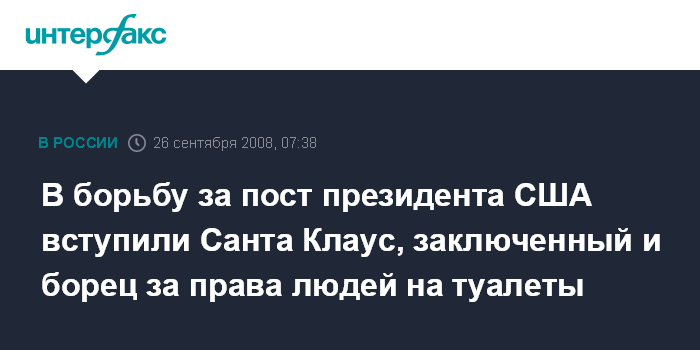 В борьбу за пост президента США вступили Санта Клаус, заключенный и борец за права людей на туалеты