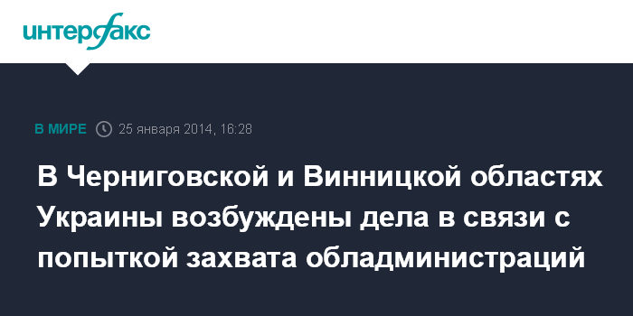 В Черниговской и Винницкой областях Украины возбуждены дела в связи с попыткой захвата обладминистраций