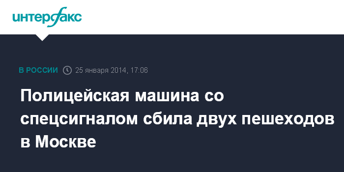 Москва. 25 января. INTERFAX.RU - Полицейский водитель, следовавший по сигналу тревоги, сбил двух пешеходов, сообщили "Интерфаксу" в пресс-службе ГУ МВД РФ по Москве. "В субботу днем у дома 8 по ул. Плещеева водитель вневедомственной охраны Северо-Восточного административного округа Москвы, следуя по сигналу "тревога" на служебной машине с включенными спецсигналами, сбил двух пешеходов, переходивших проезжую часть по нерегулируемому пешеходному переходу", - рассказали в пресс-службе.
