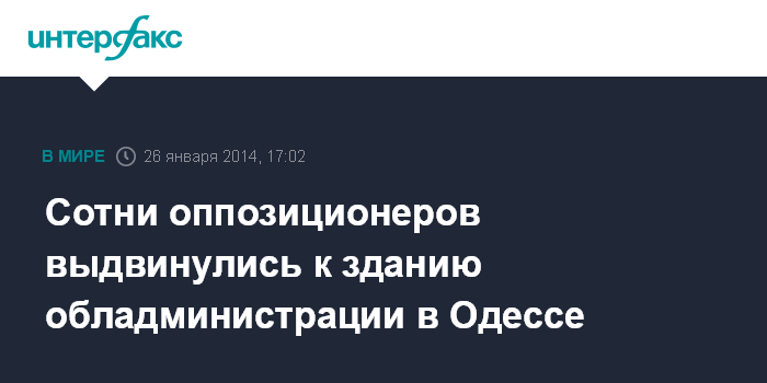 Москва. 26 января. INTERFAX.RU - Сторонники Евромайдана в Одессе прервали акцию протеста возле памятника Дюку де Ришелье в Одессе и направились к зданию Одесской областной государственной администрации.