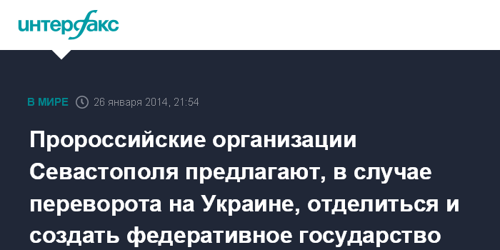 Пророссийские организации Севастополя предлагают, в случае переворота на Украине, отделиться и создать федеративное государство Малороссию