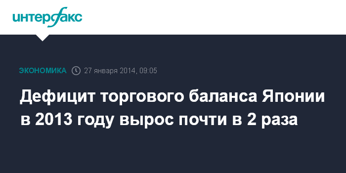 27 января. FINMARKET.RU - Отрицательное сальдо баланса внешней торговли Японии в прошлом году составило 11,5 трлн иен ($113 млрд), что почти вдвое выше уровня 2012 года (6,9 трлн иен), свидетельствуют официальные данные..