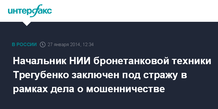 Он отметил, что в отношении Трегубенко - начальника научно-исследовательского испытательного центра исследований и перспектив развития бронетанковой техники ФБГУ "3-й Центральный НИИ" Минобороны РФ - возбуждено уголовное дело по статьям 159 УК РФ (мошенничество) и 285 УК РФ (злоупотребление должностными полномочиями)
