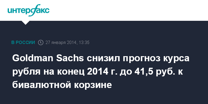 Goldman Sachs снизил прогноз курса рубля на конец 2014 г. до 41,5 руб. к бивалютной корзине