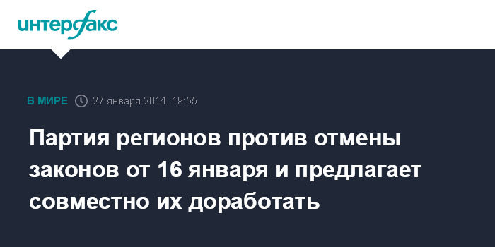 Киев. 27 января. INTERFAX.RU - Фракция Партии регионов не намерена голосовать за отмену законов от 16 января, на чем настаивает оппозиция, заявил депутат фракции Партии регионов Михаил Чечетов.