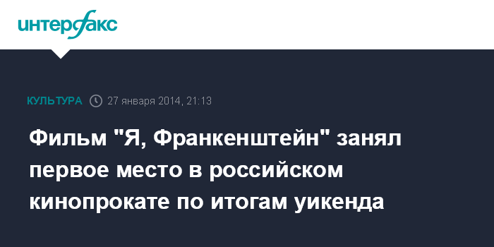 Москва. 27 января. INTERFAX.RU - Лидером российского кинопроката за минувший киноуикенд (23 - 26 января) стал американский фильм "Я, Франкенштейн".