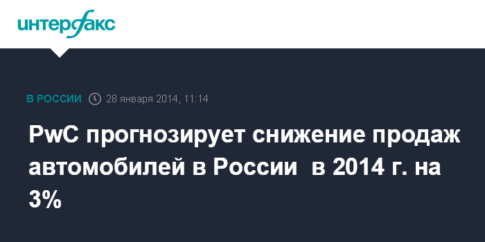 Москва. 28 января. INTERFAX.RU - Аудиторская компания PricewaterhouseCoopers (PwC) ожидает снижение рынка легковых автомобилей в России в 2014 году на 3% по сравнению с 2013 годом, до 2,54 млн шт., говорится в материалах PwC.