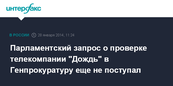 Парламентский запрос о проверке телекомпании "Дождь" в Генпрокуратуру еще не поступал
