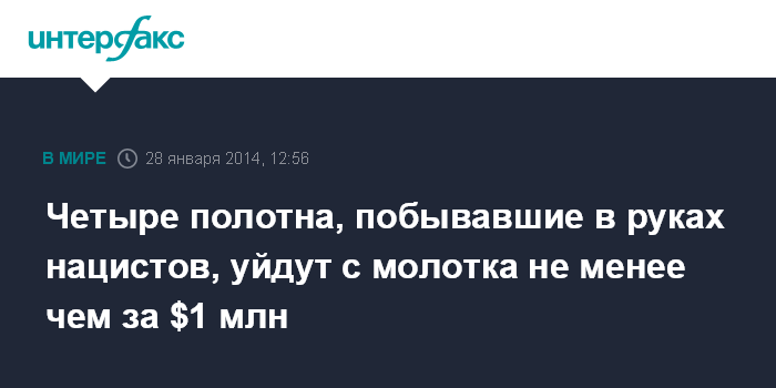 Четыре полотна, побывавшие в руках нацистов, уйдут с молотка не менее чем за $1 млн