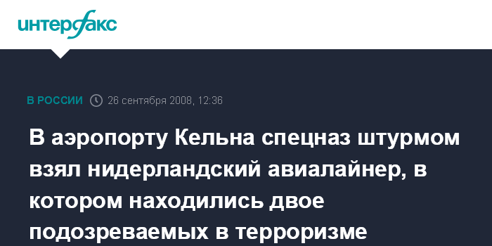 Москва. 26 сентября. INTERFAX.RU – Германские спецназовцы в пятницу взяли штурмом авиалайнер нидерландской компании КЛМ в аэропорту Кельна, сообщает британский телеканал "Скай-ньюз".