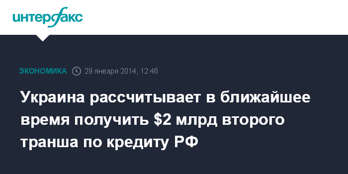 Киев. 29 января. INTERFAX.RU - Украина рассчитывает в ближайшее время получить второй транш по кредиту РФ в размере $2 млрд, сообщил и.о премьер-министра Сергей Арбузов, открывая заседание правительства в среду.