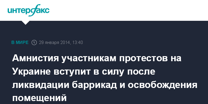 Амнистия участникам протестов на Украине вступит в силу после ликвидации баррикад и освобождения помещений