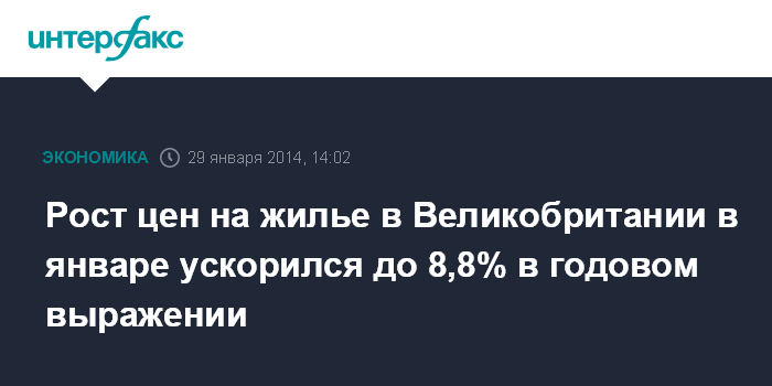 Рост цен на жилье в Великобритании в январе ускорился до 8,8% в годовом выражении