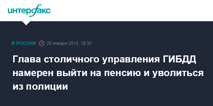 По его данным, Ильин, возглавляющий в настоящее время столичную Госавтоинспекцию, принял решение уйти на пенсию. В настоящее время он ушел в отпуск, после которого уволится из органов внутренних дел.