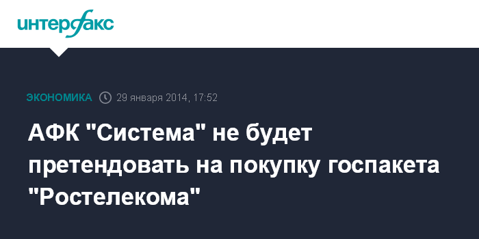 АФК "Система" не будет претендовать на покупку госпакета "Ростелекома"
