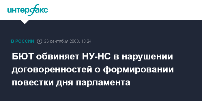 Москва. 26 сентября. INTERFAX.RU – Лидер фракции БЮТ Иван Кириленко обвиняет фракцию НУ-НС в нарушении договоренностей, касающихся формирования совместной с БЮТ и Блоком Литвина повестки дня пленарного заседания в пятницу