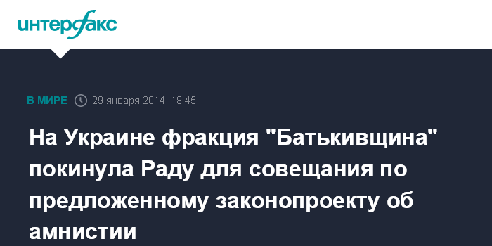 Москва. 29 января. INTERFAX.RU - Народные депутаты от фракции "Батькивщина" около 16.30 покинули зал заседаний Верховной Рады Украины.