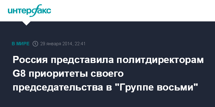 Россия представила политдиректорам G8 приоритеты своего председательства в "Группе восьми"