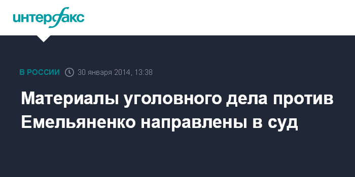 Как сообщил начальник управления информации и общественных связей ГУ МВД РФ по Москве Андрей Галиакберов, Емельяненко уже получил на руки копию обвинительного акта по уголовному делу, возбужденному в отношении него в октябре прошлого года управлением дознания московской полиции по статье "побои". "Сегодня все материалы данного уголовного дела поступят в суд", - сказал Галиакберов "Интерфаксу" в четверг.