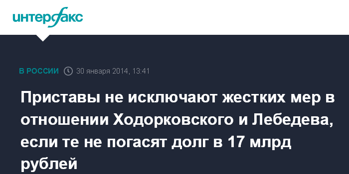 Приставы не исключают жестких мер в отношении Ходорковского и Лебедева, если те не погасят долг в 17 млрд рублей