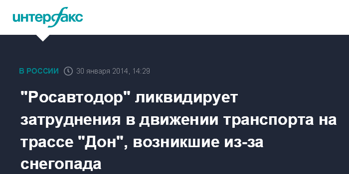 "Росавтодор" ликвидирует затруднения в движении транспорта на трассе "Дон", возникшие из-за снегопада