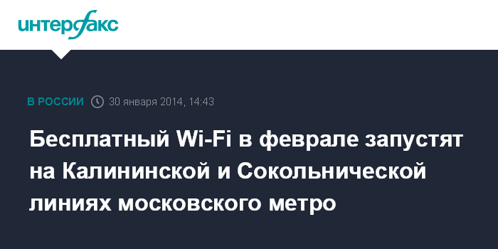 "Уже в феврале сеть передачи данных стандарта Wi-Fi планируется запустить на Калининской и Сокольнической линиях", - уточнил собеседник агентства.